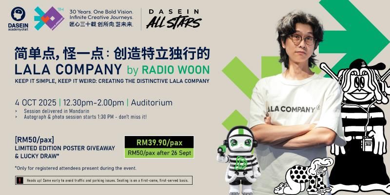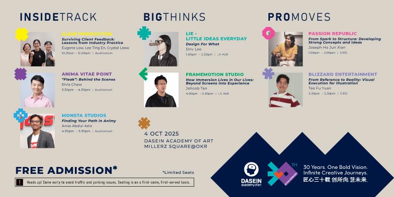 On 4 October 2025, Dasein Academy of Art is celebrating their 30th Anniversary with a full day of industry talks, workshops, and gatherings that bring together students, alumni, lecturers, and industry partners from across the creative field. It’s a chance to hear stories from the frontlines of design and art, to roll up your sleeves in hands-on sessions, and to reconnect with the community that has grown with us over thirty years. Come join join us at Dasein Academy of Art and be part of the celebration!